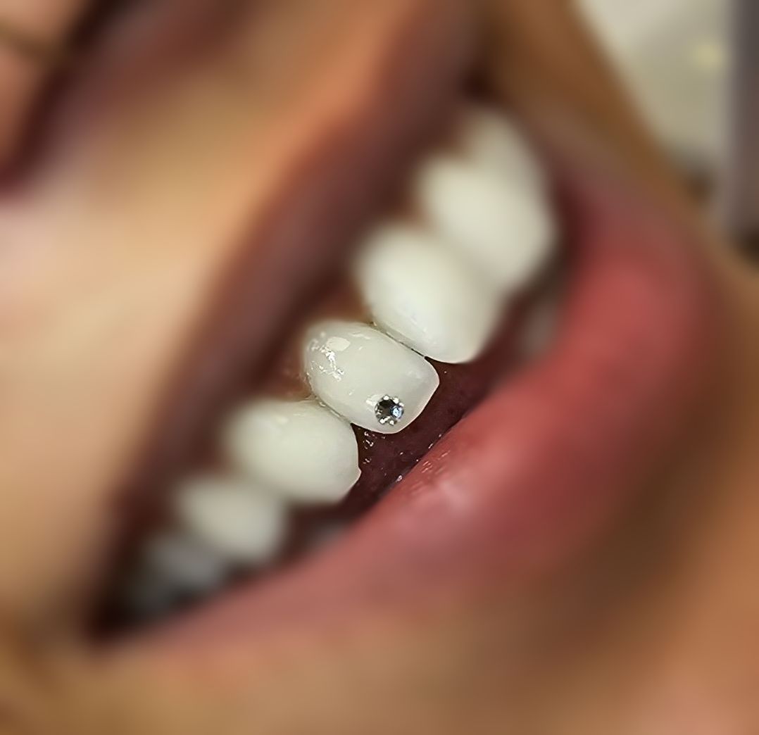 Strahlendes Lächeln mit Zahnbleaching & Swarovski Zahnschmuck