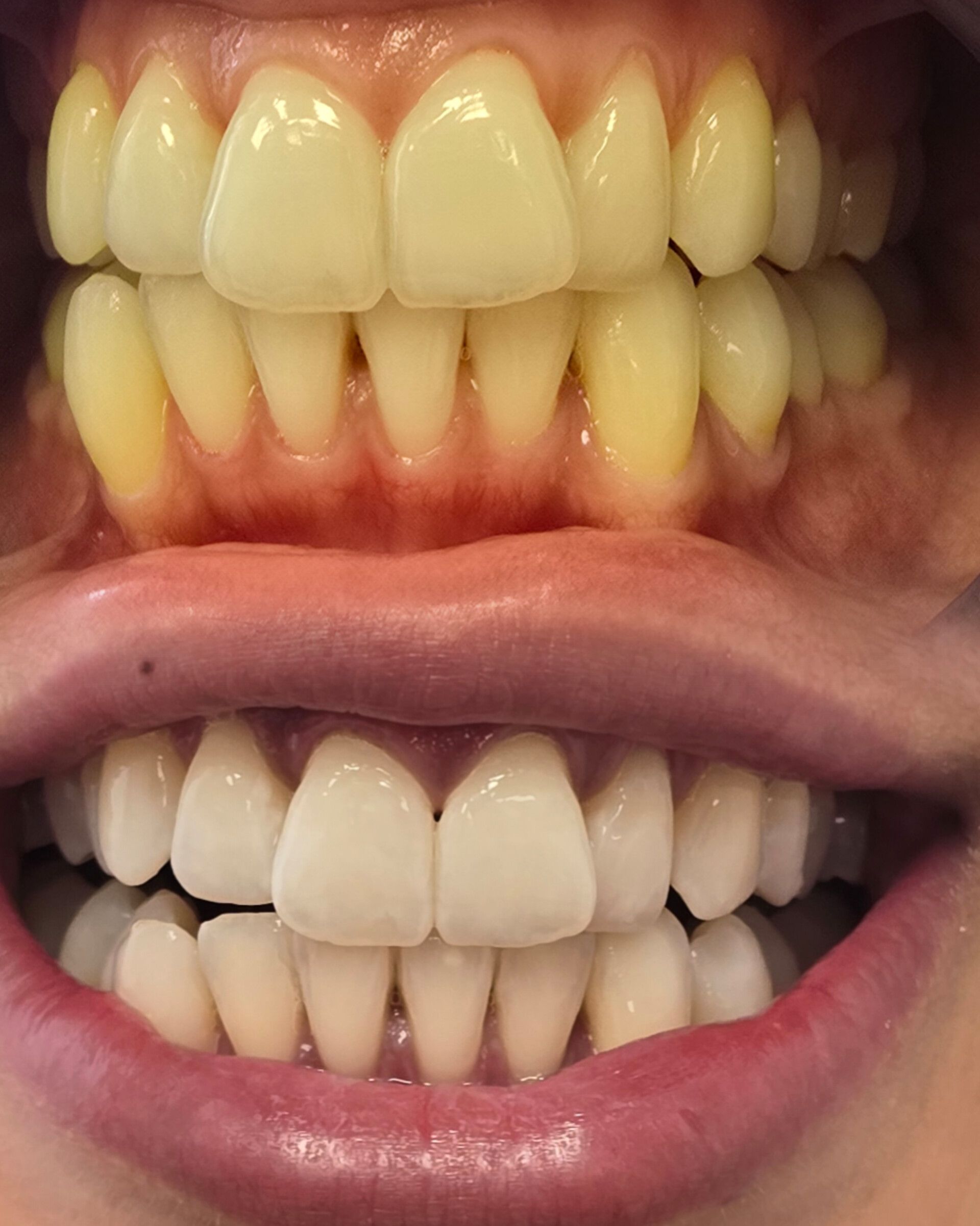 Dieses kosmetische Zahnbleaching ist ideal für Menschen, die Verfärbungen durch Kaffee, Tee, Rauchen oder andere Lebensmittel loswerden möchten, um ein strahlendes, weißes Lächeln zu erhalten.